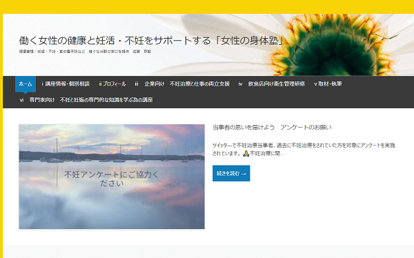 「働きながら妊活しましょ」を執筆する笛吹和代先生(日本不妊カウンセリング学会認定不妊カウンセラー)が主催する「女性の身体塾公式サイト」では、現在不妊治療に関するアンケート募集の告知記事を掲載している。