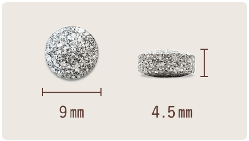 錠剤が苦手な人やつわりの時期でも抵抗なく飲めるよう、1粒のサイズは9ミリ×4.5ミリ。さらに角を丸く削り、無味無臭にすることで飲みやすさを追求している。